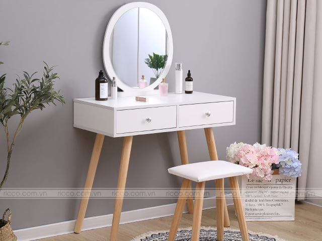 Bàn trang điểm là món đồ nội thất không thể thiếu đối với phụ nữ, đặc biệt là những người yêu thích làm đẹp. Một chiếc bàn trang điểm đẹp và tiện dụng sẽ giúp bạn có được những phút giây thư giãn thoải mái khi làm đẹp và tô điểm cho không gian phòng ngủ của mình. Hãy cùng Ricco Minh Hải tìm hiểu về bàn trang điểm qua bài viết dưới đây và lựa chọn mẫu mà bạn yêu thích nhất nhé!
