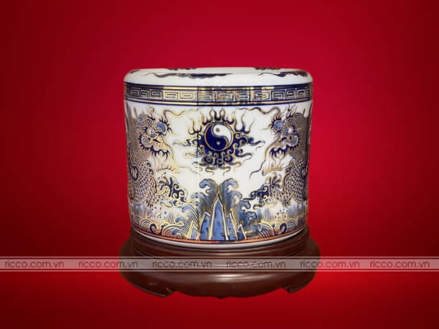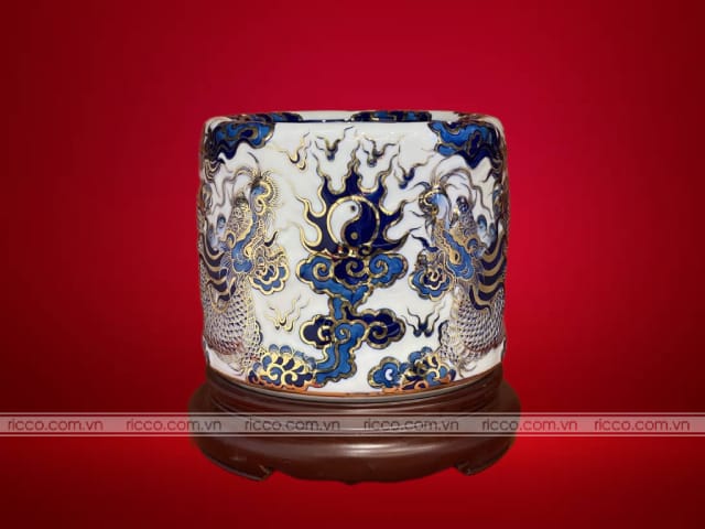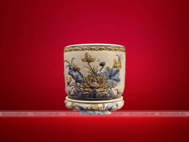 - Bát Hương Sứ: Bát hương sứ có bề mặt mịn màng, sáng bóng và thường được trang trí với các họa tiết tinh xảo. Loại này được ưa chuộng vì vẻ đẹp thanh lịch và sang trọng. Bát hương sứ còn được chia thành nhiều loại theo cách thức chế tác và trang trí: In chìm, đắp nổi hoặc dát vàng.