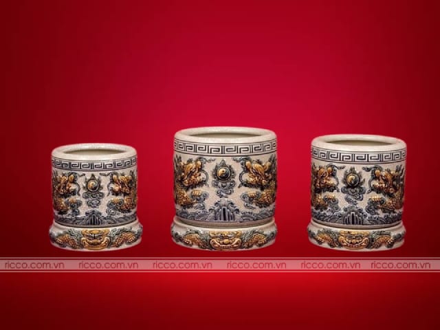 Bộ bát hương Bát Tràng họa tiết rồng phường tinh xảo
