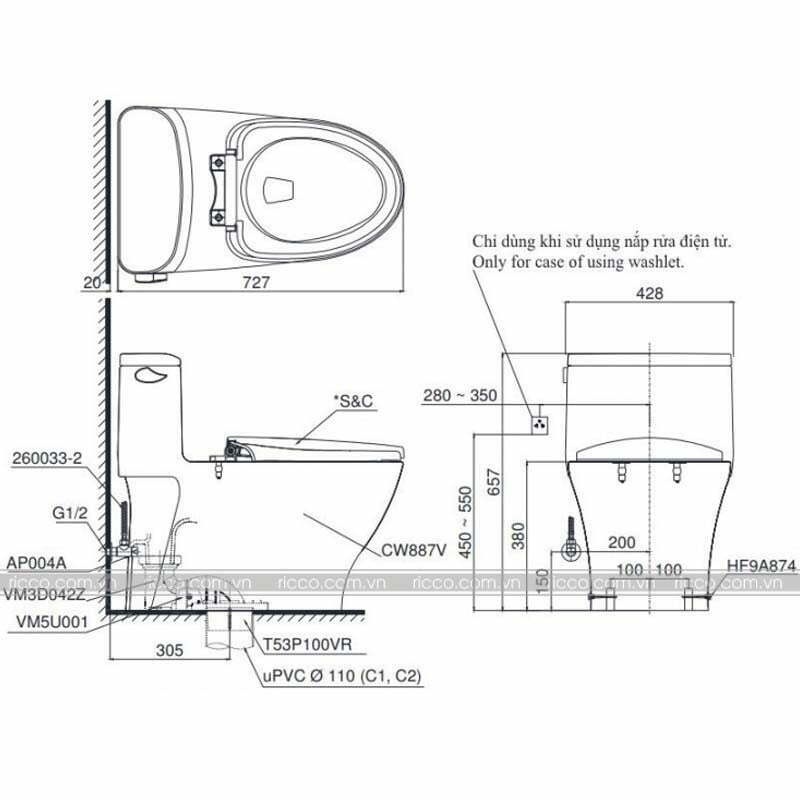 Bồn cầu 1 khối TOTO MS887RT8XW