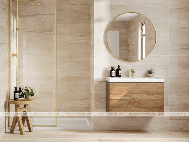 Mẫu gạch ốp tone kem nhạt là chân ái cho phòng tắm hiện đại
