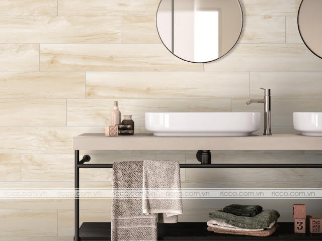 Tham khảo ngay mẫu gạch ốp phòng tắm vân gỗ tone kem nhạt