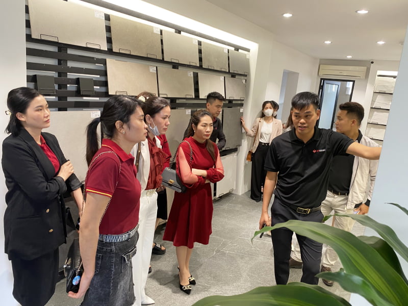 Cũng trong chương trình đào tạo “Học để vươn xa”, đội ngũ nhân viên của Minh Hải đã có cơ hội thăm quan Showroom trưng bày sản phẩm gạch ốp lát của Vietceramic tại Hà Nội.
