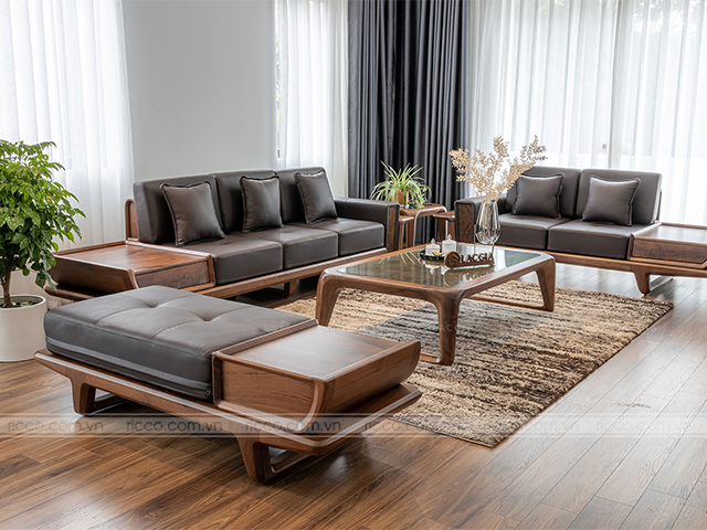 Mẫu sofa gỗ óc chó hiện đại, sang trọng, đẳng cấp