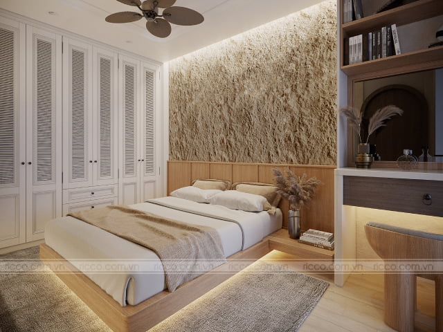 Với nhu cầu sinh hoạt riêng tư cho bố mẹ và con cái, việc thiết kế phòng ngủ tại căn hộ chung cư 55m2 cần được chú trọng để đảm bảo sự thoải mái, tiện nghi và hợp phong thủy.